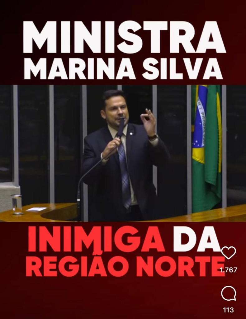 Aliado do ex-presidente Jair Bolsonaro, o deputado federal Alberto Neto (PL/AM) tem um discurso agressivo ao abordar a BR-319 com a ministra Marina Silva. Nas redes sociais do deputado, ele chamou Marina de “Inimiga do Norte” ao cobrar a BR-319, mas não foi claro nos argumentos técnicos ambientais e nem trouxe documentação que provasse que a ministra emperrava a estrada em menos de dez meses da segunda gestão à frente do Ministério de Meio Ambiente (MMA).