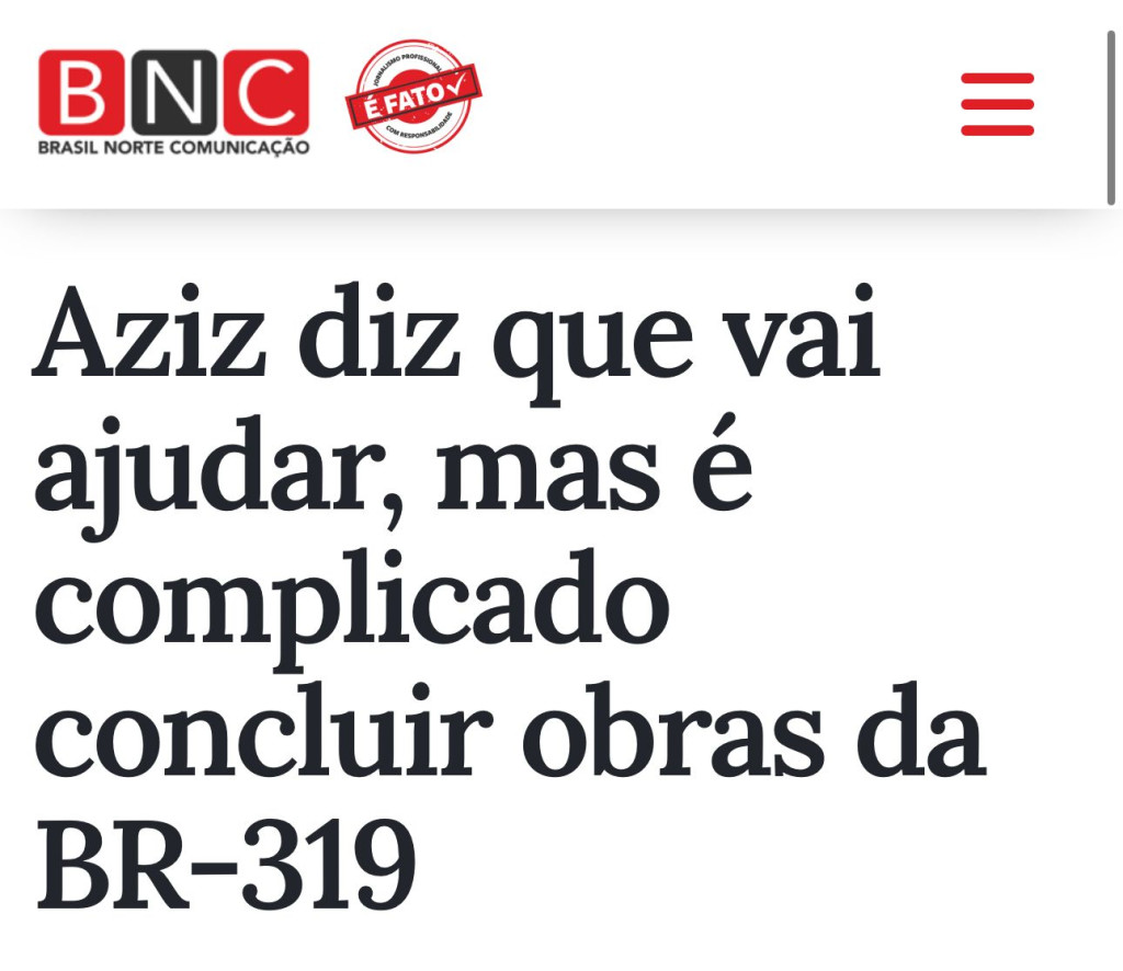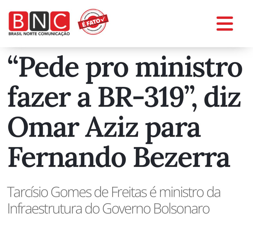 No texto, é atribuído a Omar Aziz a fala para o senador Fernando Bezerra, na qual ele diz: “Faz um favor para mim. Na próxima conversa que Vossa Excelência estiver com o ministro Tarcísio pede para ele [o ministro] fazer a BR-319, que todo mundo já foi lá e prometeu e não fez um metro ainda. Por favor”.