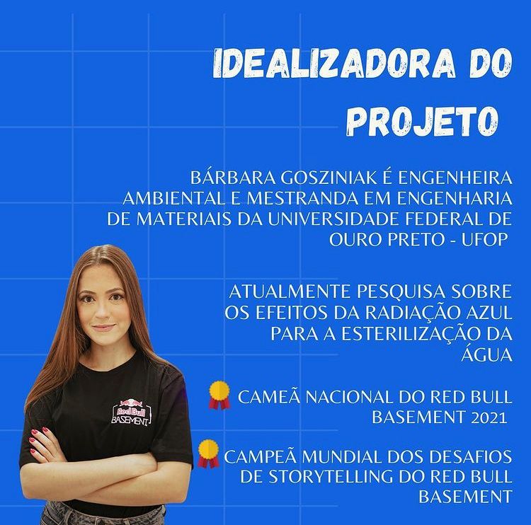Bárbara é engenheira ambiental e mestranda em engenharia de materiais, além de pesquisadora sobre os efeitos da radiação azul para esterilização da água. Em 2021, foi campeã nacional do Red Bull Basement. Em meio deste ano, Bárbara Gosziniak recebeu menção honrosa do Instituto de Ciências Exatas e Biológicas da Ufop pelo desempenho no evento global.