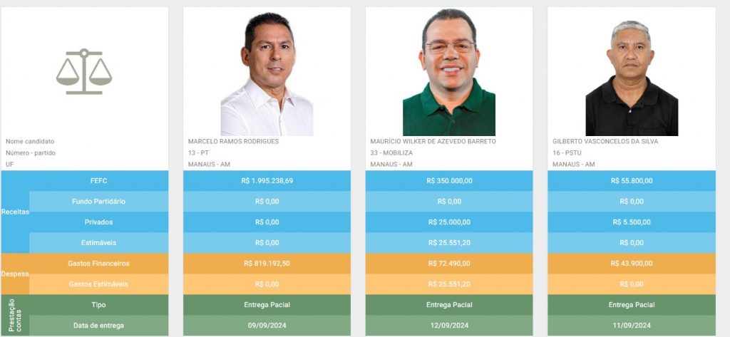 “Até agora foram registrados R$ 6.395.543, 20 em despesas e R$ 3.974.100, 00 de receita. Para quem disputar somente o primeiro turno, o prazo vai até 05/11. Para quem for ao segundo turno, esse prazo limite vai até 16/11”, justificou.