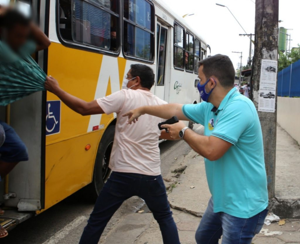 Candidato a prefeito de Manaus prende suspeito de assalto em ônibus durante campanha