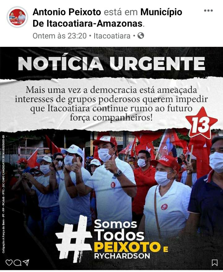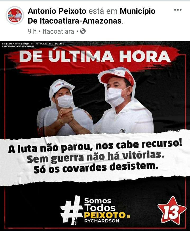 MANAUS – A Justiça Eleitoral do Amazonas indeferiu, na terça-feira, 4, o pedido de candidatura do prefeito Antônio Peixoto (PT), candidato à reeleição em Itacoatiara (a 270 quilômetros de Manaus), por irregularidade insanável, por configurar ato doloso de improbidade administrativa. A decisão, do juiz Saulo Goes Pinto, ainda cabe recurso.