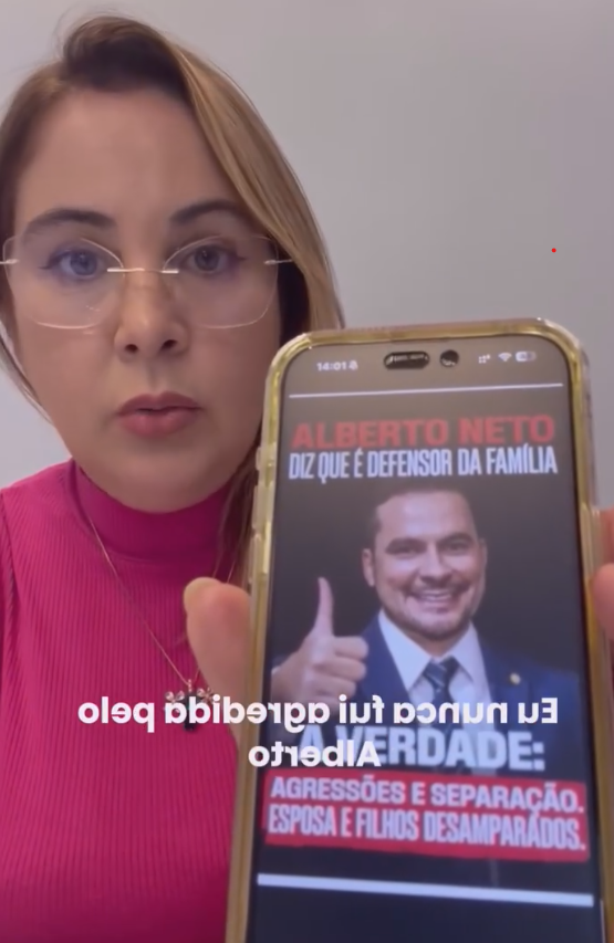 Em vídeo publicado em uma rede social, Debora reagiu a um conteúdo que classificou como falso. O material sugeria que Alberto Neto praticou violência doméstica e deixou a família desamparada. “Fui vítima de injúria e de uma enxurrada de mentiras proferidas pelo pessoal do atual prefeito de Manaus”, disse a ex-esposa do político. Veja a publicação: