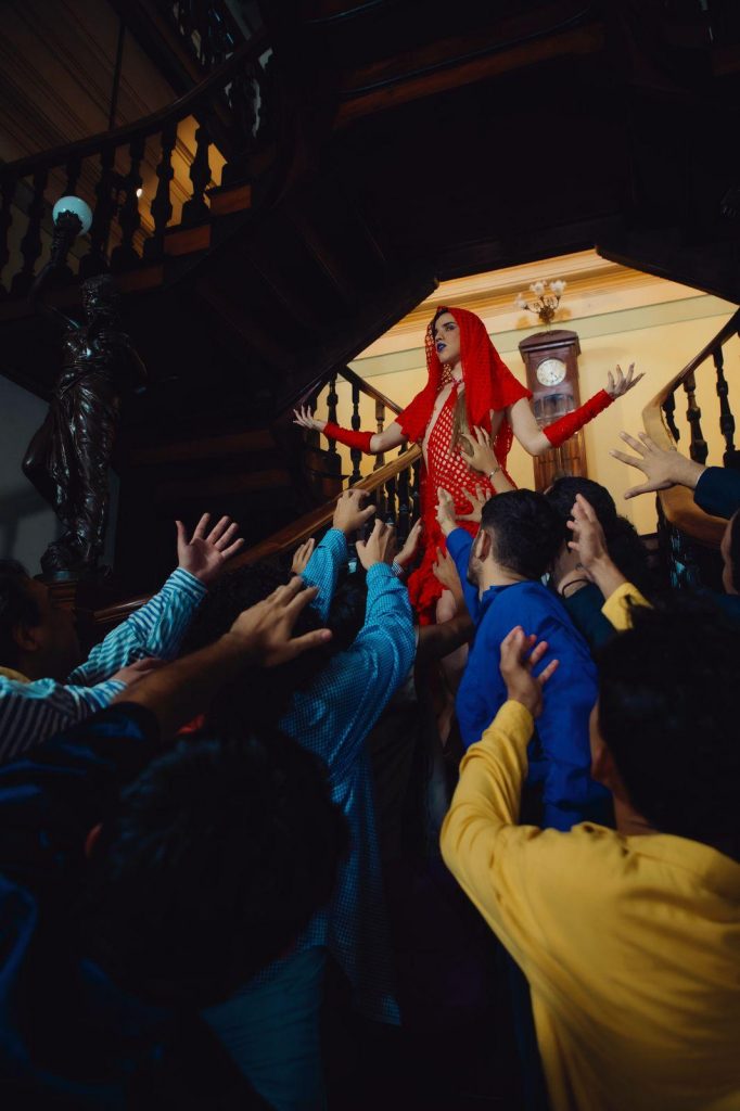 A escolha da equipe de produção e elenco do videoclipe foi pautada na representatividade. Malena fez questão de ter artistas trans no projeto, tanto na dança quanto nos bastidores. “Queria construir esse trabalho com pessoas que compartilham da minha vivência. Fizemos audições e encontramos talentos incríveis, como a Alessandra, que trouxe uma presença marcante ao balé”, conta a cantora que trouxe K4lyope para cena, nome artístico da também cantora Alessandra Liberato que integra a nova geração de cantoras trans do pop manauara. A coreografia foi criada em parceria com Gandhi, diretor de dança que acompanha a trajetória artística de Malena e que desempenhou um papel fundamental na concepção do espetáculo visual da obra.