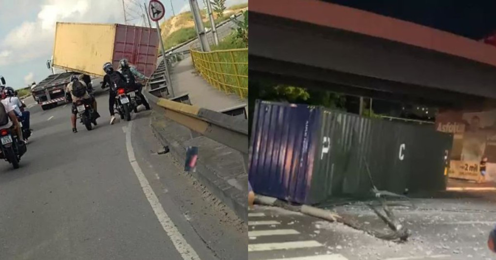 No dia 2 do mesmo mês, um contêiner desprendeu de uma carreta e despencou do viaduto Miguel Arraes, na Avenida Ephigênio Salles, Zona Centro-Sul. Com a queda, o acidente destruiu um poste e pedaços de concreto atingiram um veículo que passava pelo local.