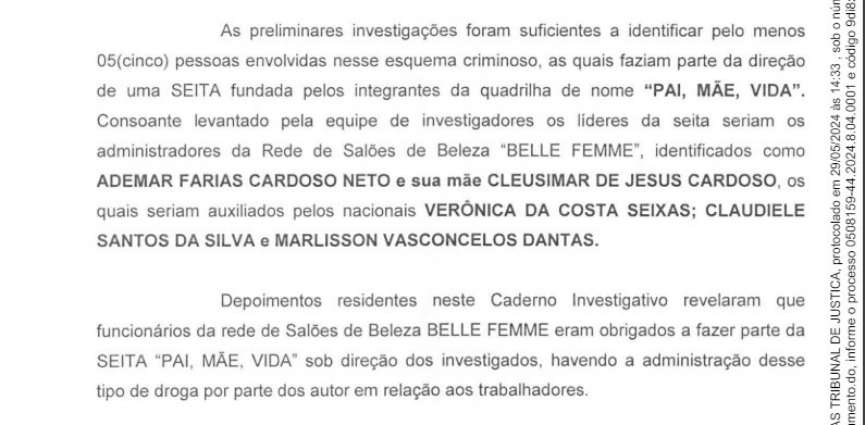 As investigações da PC-AM apontam que Ademar Cardoso, irmão de Djidja, era o líder da seita religiosa e utilizava o livro como manual para atingir o objetivo de administrar o anestésico ketamina nos participantes, para que eles pudessem ter experiências espirituais profundas. Os líderes do grupo obrigavam funcionários da rede de salões de beleza a aderirem ao movimento, segundo depoimentos feitos durante a investigação.
