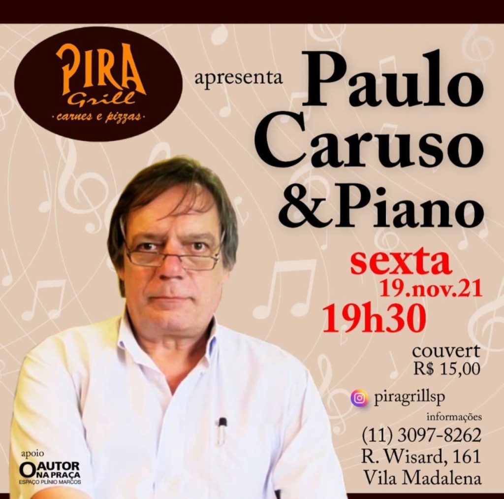 MANAUS – Para celebrar o retorno aos palcos da noite paulistana, o músico Paulo Caruso receberá sexta-feira, 19, o público para um show completo ao piano. Intitulado “Paulo Caruso & Piano”, o evento acontecerá no Pira Grill Carnes e Pizzas, na rua Wizard, bairro Vila Madalena, região Oeste de São Paulo, com um repertório regado a MPB e jazz.