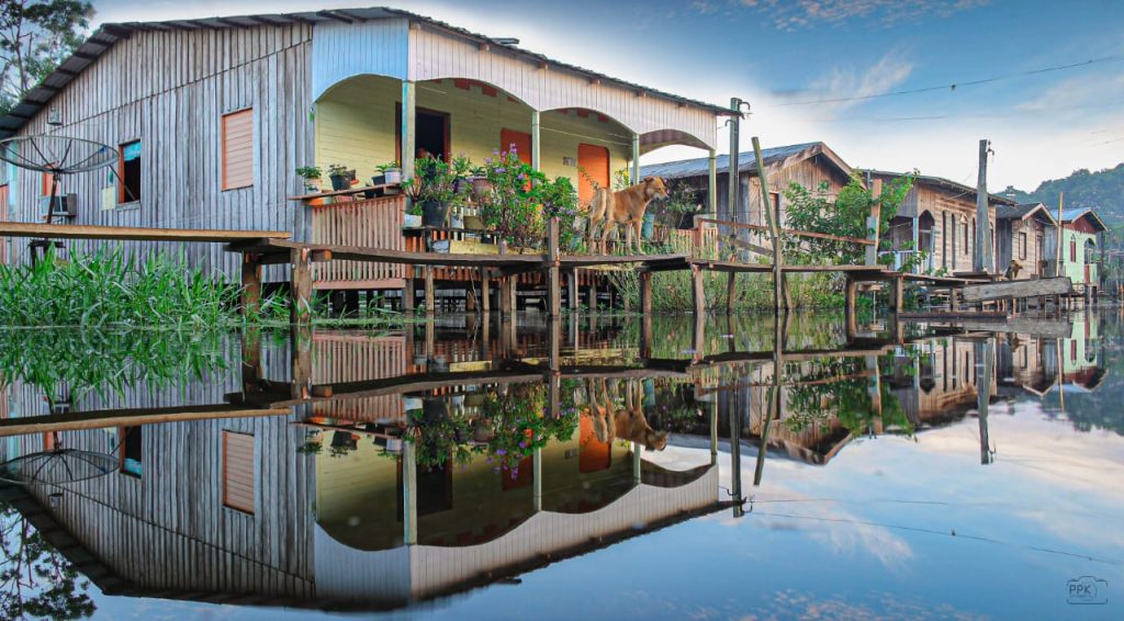 AMAZONAS – Em Anamã, carpinteiros são artesãos e casas são obras de arte. Por conta da cheia do rio Solimões com duração de três meses, o município do interior do Amazonas é popularmente conhecido como a “Veneza da Amazônia”. O fenômeno faz moradores construírem “casas flutuantes” coloridas para enfrentar as dificuldades da vida sobre as águas.