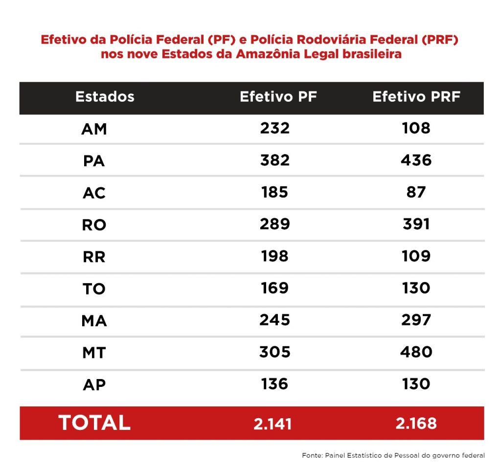 Os primeiros dados levantados foram os efetivos de policiais militares nos Estados que compõem a Amazônia Legal, uma área de 5.217.423 km², correspondente a 61% do território brasileiro, composta pelos estados do Amazonas, Roraima, Acre, Amapá, Roraima, Rondônia, Tocantins, Maranhão e Mato Grosso. As unidades federativas compartilham os mesmos desafios econômicos, políticos, sociais e ambientais, e são onde se concentram os recordes de crimes ambientais no país.
