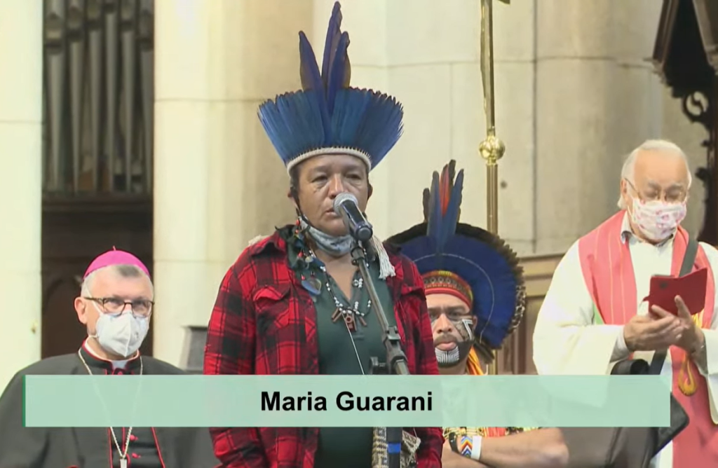 A líder Guarani, Maria Guarani, representante indígena clamou por justiça aos povos tradicionais durante o ato na Catedral da Sé. “É muito importante vocês estarem aqui nos ouvindo porque o povo indígena, eu não falo só pela minha etnia não, eu falo pelos povos inteiros do Brasil, todos os povos indígenas que hoje são muitas aldeias, estão sendo assassinados. Hoje estou aqui para pedir justiça pelo Dom e Bruno, pessoas boas que estavam defendendo os nosso direitos, do nosso povo indígenas”, disse, em tom de súplica para que parem de assassinar os indígenas.