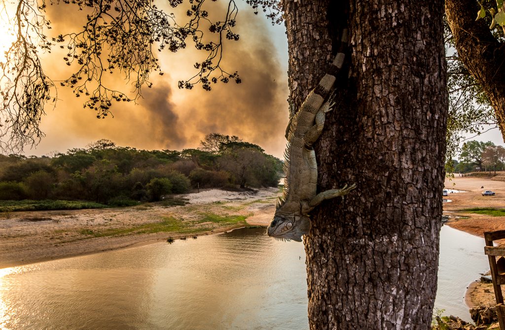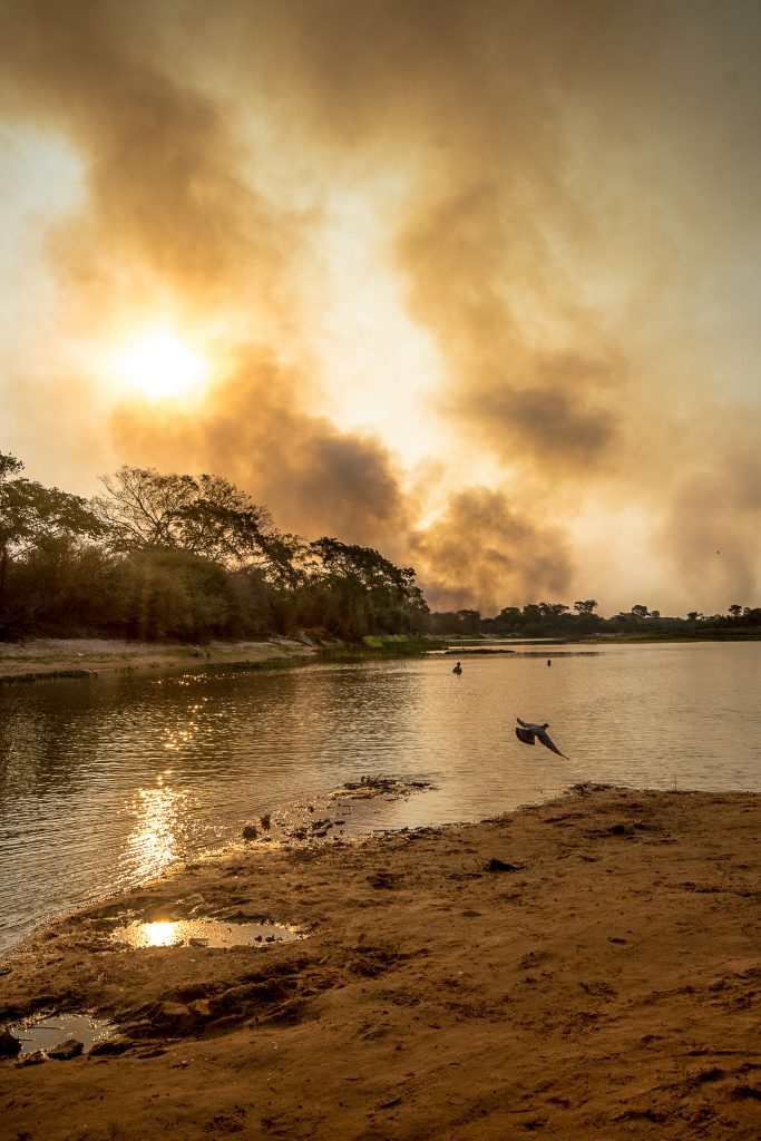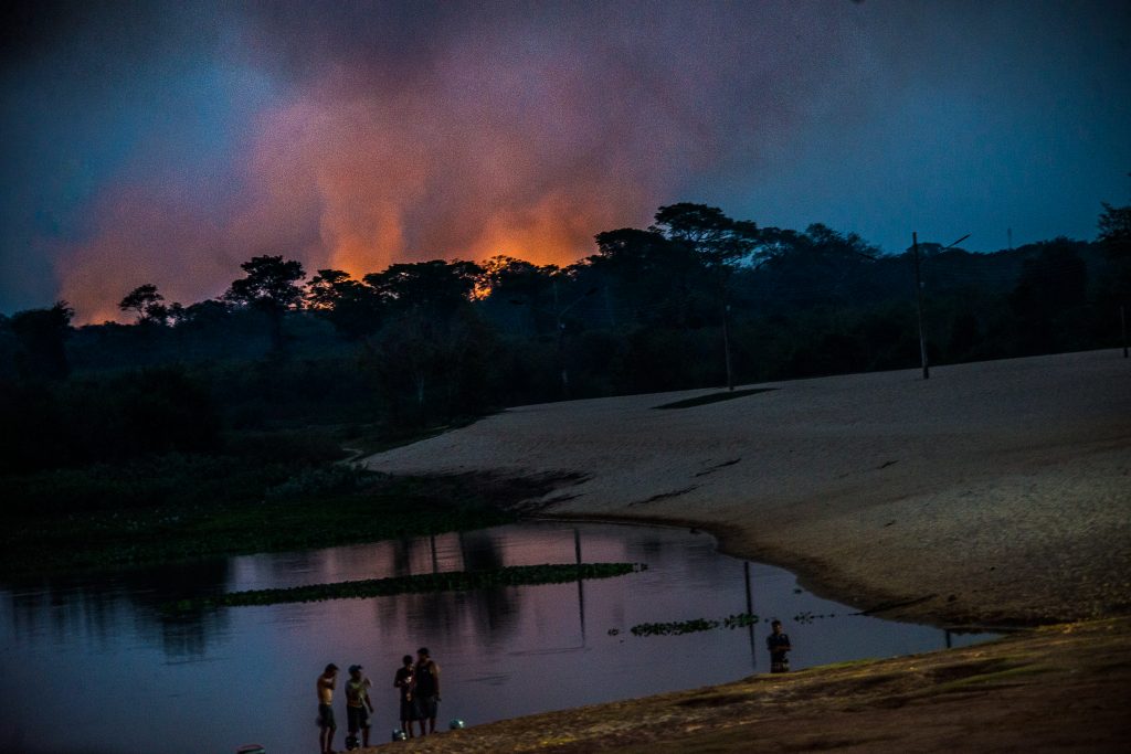 Eu, Miguel e o barqueiro retornamos para terra sem ter noção da quantidade de focos de fogo que encontramos em apenas uma hora percorrendo o rio Paraguai. “O fogo vai crescer, Miguel.” Digo cansado e ele assente em silêncio. Ao subirmos da praia para a rua olhamos para trás e vemos uma família na beira da praia passeando.