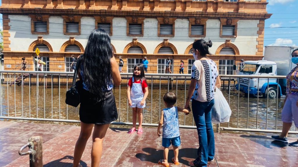 Cheia do rio Negro vira atração turística no Centro Histórico de Manaus