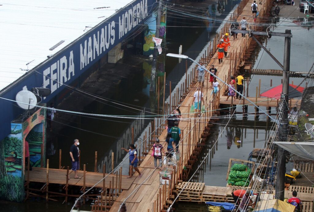No centro da capital, a defesa civil municipal construiu pontes para que a população conseguisse se locomover. Os feirantes que atuam na maior feira da região Norte, Manaus Moderna, terão que se mudar para uma balsa em frente ao rio Negro por conta das águas já invadirem o local.