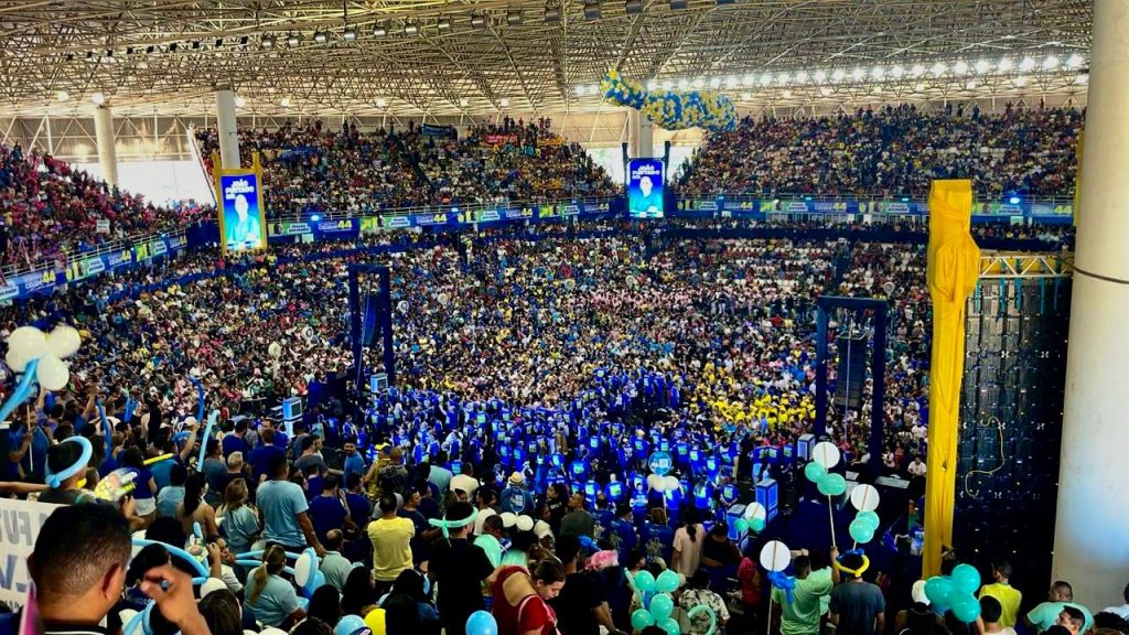 MANAUS (AM) – O lançamento da candidatura à Prefeitura de Manaus do deputado estadual Roberto Cidade (UB), realizado neste sábado, 3, reuniu mais de 30 mil pessoas, segundo a organização, na Arena Amadeu Teixeira, na Zona Centro-Oeste da capital amazonense. Em 3 de maio deste ano, o local recebeu cerca de quatro mil participantes no evento que oficializou a pré-candidatura do deputado federal Alberto Neto (PL) ao Executivo municipal, e ficou esvaziado, mesmo com a presença do ex-presidente Jair Bolsonaro (PL).