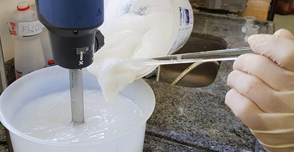 “Começamos com a polpa branqueada de pinus porque ela dá origem a uma suspensão de nanocelulose com maior viscosidade que a de eucalipto. Mas logo em seguida testamos a polpa de eucalipto e adaptamos formulações”, conta o pesquisador da Embrapa Washington Magalhães. A formulação desenvolvida foi publicada em um comunicado técnico.