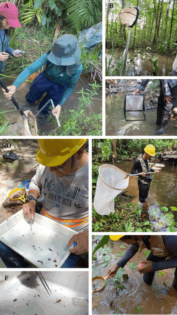 De acordo com a introdução do protocolo publicado no periódico EDUCAmazônia, o delineamento amostral adequado para o uso dos insetos aquáticos como indicadores deve considerar o número de amostras, os habitats a serem investigados e a sazonalidade climática. Insetos aquáticos são influenciados por variáveis ambientais, que incluem características estruturais como o tipo de substrato e a quantidade de amostras necessárias para uma representação precisa da fauna local.