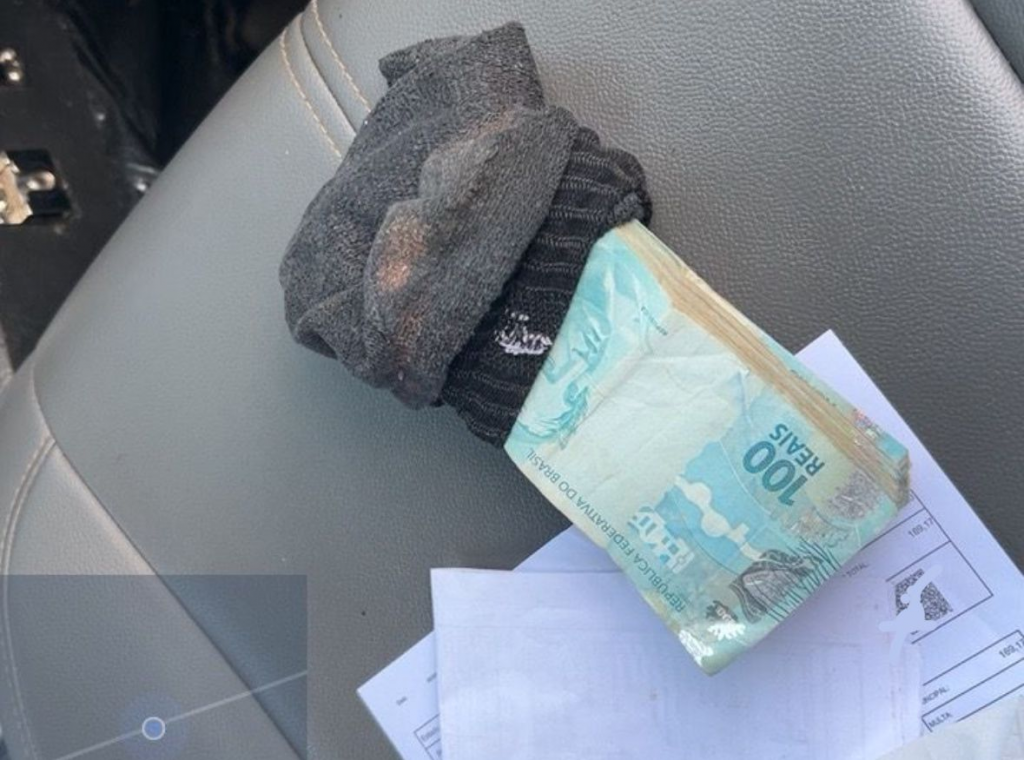Durante a revista, além do material de campanha, os policiais encontraram uma meia escondida no porta-luvas. Ao retirá-la, foram encontrados R$ 20 mil em espécie, distribuídos em notas de cem reais. Todo o material foi apreendido.
