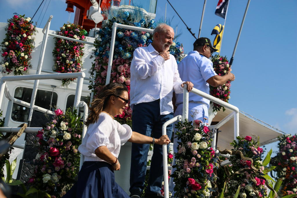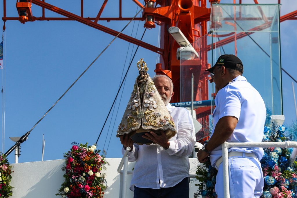 BELÉM (PA) – O presidente Luiz Inácio Lula da Silva (PT) e a primeira-dama Janja Lula da Silva, participam, na manhã deste sábado, 12, do Círio Fluvial, uma das mais importantes celebrações do Círio de Nazaré em Belém. O casal recebeu a Imagem Peregrina de Nossa Senhora de Nazaré em mãos, às 8h30, simbolizando o início da procissão nas águas.