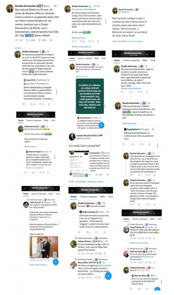 Em 2022, a Corregedoria do Conselho Nacional de Justiça (CNJ) determinou a suspensão do perfil da juíza Rosália Guimarães Sarmento no Twitter porque ela o usou, de forma reiterada, para defender o voto no então ex-presidente Lula. Atualmente, o perfil da juíza na rede social X consta como “Account withheld” (“conta retida”, na tradução em português).