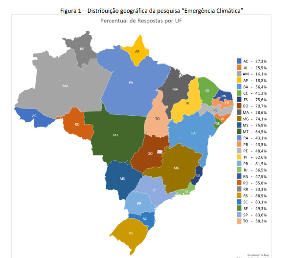 A pesquisa “Emergência Climática” foi realizada entre 1º de dezembro de 2023 e 24 de janeiro de 2024, e apenas 3.590, dos 5.570 municípios brasileiros, responderam ao questionamento. Além das administrações que confirmaram ou negaram o preparo, 6% disseram desconhecer as previsões de eventos climáticos que poderão afetar o município e outras 3,4% não responderam. Estados da Região Norte concentraram o menor número de respostas. (Veja abaixo)