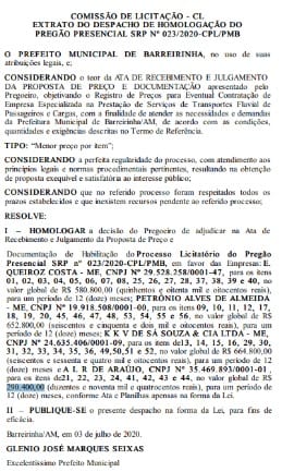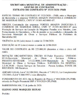 No início deste mês, o prefeito Glênio Seixas também contratou, por R$ 3,4 milhões, sete empresas para realização de serviços de locação de máquinas pesadas, fornecimento de carteiras escolares, transporte fluvial e reforma na sede da prefeitura.