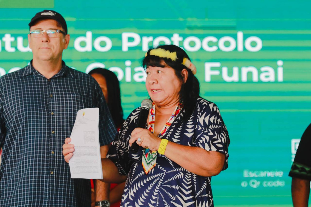O protocolo foi assinado pela presidente da Funai, Joenia Wapichana, e o coordenador-geral da Coiab, Toya Manchineri. O momento foi classificado como histórico pelas lideranças indígenas.