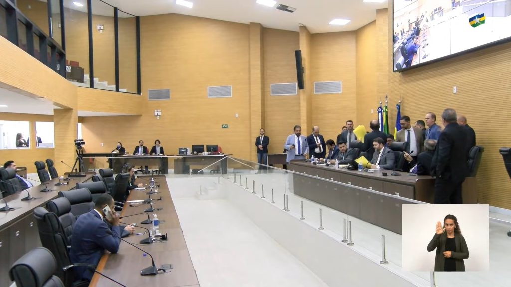 O assunto chegou a pairar, vagamente, entre as pautas da sessão ordinária da Ale-RO nesta terça-feira. Durante a leitura do expediente, um dos parlamentares anunciou, entre titubeios, o recebimento de um ofício comunicando a condenação do deputado. A sessão foi suspensa por tempo indeterminado logo em seguida; foi retomada pouco menos de uma hora depois e encerrada após apreciação de requerimentos para medalhas do mérito e menções de louvor a instituições e personalidades.