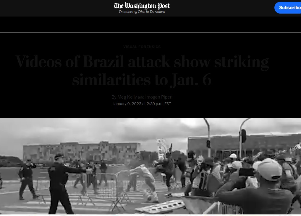 MANAUS – Os principais veículos de comunicação do mundo estamparam, em manchetes, a invasão e depredação provocadas na Praça dos Três Poderes na capital federal da República: Brasília. CNN, The Guardian, Clarín, Huffington Post, El País, The New York Times, The Whashington Post, Le Monde, entre outros. O The Washington Post comparou em sua manchete, com montagem de vídeo e foto, a invasão de Brasília à invasão do Capitólio, que aconteceu nos EUA, em 6 de janeiro de 2021.