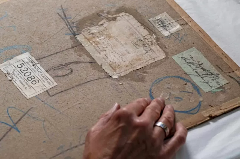 O retrato foi encontrado atrás da tela, coberto por camadas de cola e papelão, que aparentemente foram colocadas antes de uma exposição no início do século 20.