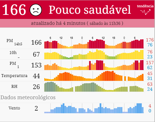 De acordo com o sistema de vigilância, a capital do Amazonas registra índice de 166 (up/m³) no nível de poluição atmosférica. Os efeitos na saúde podem ser sentidos por grupos mais sensíveis, como crianças e idosos.