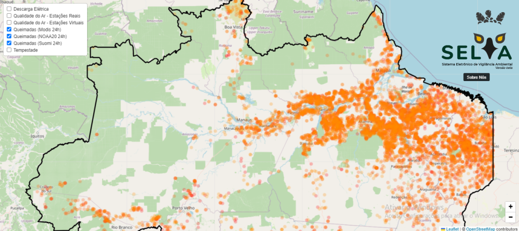A fumaça deriva dos incêndios florestais que atingem a região amazônica nas últimas semanas. O Sistema Eletrônico de Vigilância Ambiental (Selva) mostra maior concentração de focos de queimadas no Estado do Pará e, também, na Região Metropolitana de Manaus.
