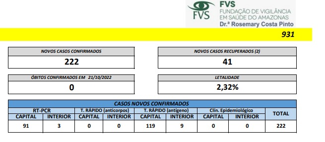 No mesmo período, as internações foram de 4 para 11 por conta da doença. Para se ter uma ideia, em relação ao salto de infecções, até o último dia 17, o boletim apontava uma média de 32 registros diários da doença; no dia seguinte, 140 novas infecções por Covid-19 foram contabilizadas no Amazonas, uma diferença de 108 novos casos. Segundo a última divulgação disponível até o sábado, 22, o quantitativo de casos de Covid-19 elevou para 222 novos registros em todo o Estado, sendo 210 resultados positivos na capital e 12 no interior.
