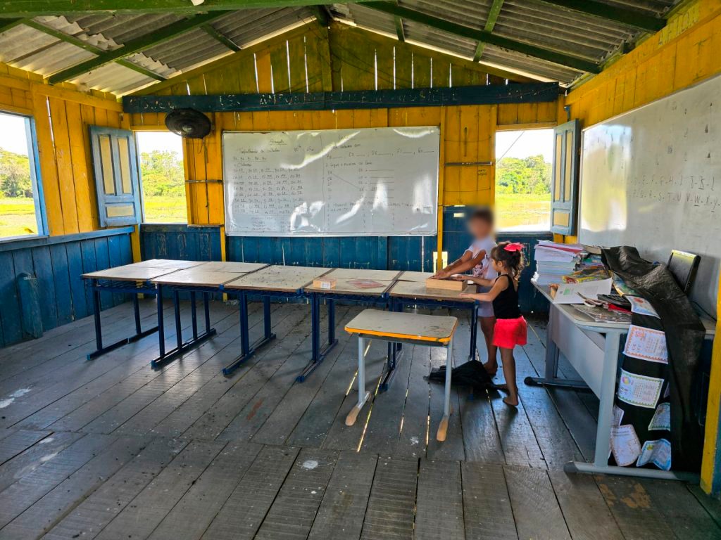 A unidade atende 15 estudantes que cursam do 1° ao 5° ano do Ensino Fundamental. Conforme relatos de um comunitário à CENARIUM, que escolheu não se identificar, falta material didático e é comum a presença de animais, como morcegos e cabas. Por estar em uma área de várzea, no período de cheia, o rio alaga a escola e as aulas são interrompidas por três meses, todos os anos.