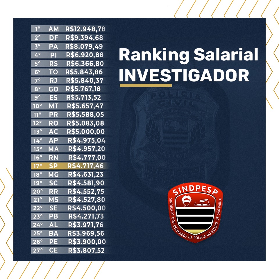 O Sindicato dos Escrivães e Investigadores da Polícia Civil do Amazonas (Sindeipol-AM) admitiu que categoria é a mais bem remunerada do País e reforçou que a mobilização não é por reajuste salarial. “Sobre essa questão de ganhar bem, de fato, pelo ranking, o nosso salário é maior, mas a gente não entende como a gente que ganha muito bem, a gente entende que os salários [dos outros Estados] que estão abaixo.”