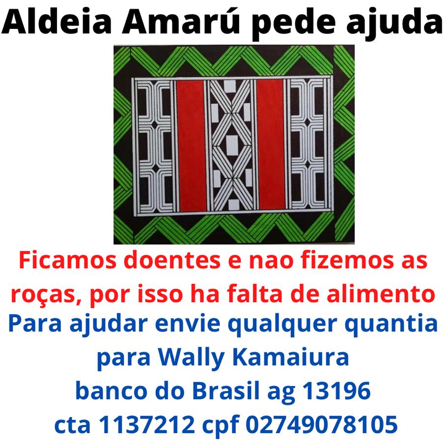 “Aldeia Amarü pede ajuda. Ficarmos doentes e não fizemos as roças, por isso há falta de alimento”, diz a publicação do indígena enviada à REVISTA CENARIUM. Segundo o artista indígena, a comunidade também está sem polvilho, alimento essencial para o sustento das famílias que moram na aldeia.
