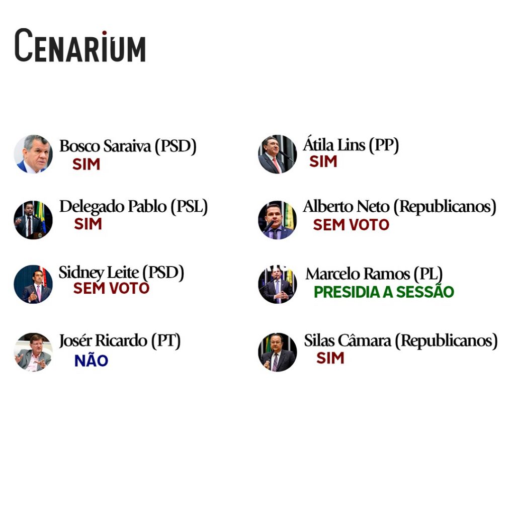 No total, a votação contou com quatro votos a favor, sendo deles: Átila Lins (PP), Silas Câmara (Republicanos), Delegado Pablo (PSL) e Bosco Saraiva (Solidariedade). Somente um voto contra, do deputado José Ricardo (PT) e três parlamentares que se abstiveram do voto, sendo eles: Capitão Alberto Neto (Republicanos), Sidney Leite (PSD) e Marcelo Ramos (PL).
