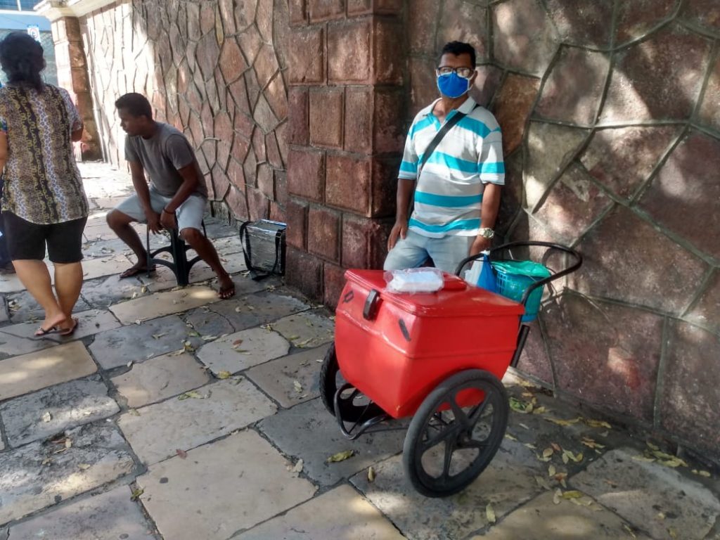 Nos últimos 20 anos a maneira mais fácil de encontrar o picolezeiro Carlos Alberto, de 57 anos, é ao lado do portão da escola Adalberto Valle, localizada na rua Tapajós. Com a pandemia, às aulas foram suspensas e o vendedor teve que se ‘mudar’. Ao lado de seu fiel companheiro, o carrinho de picolé, Carlos passou a circular pelo entorno do Teatro Amazonas atrás de clientes.