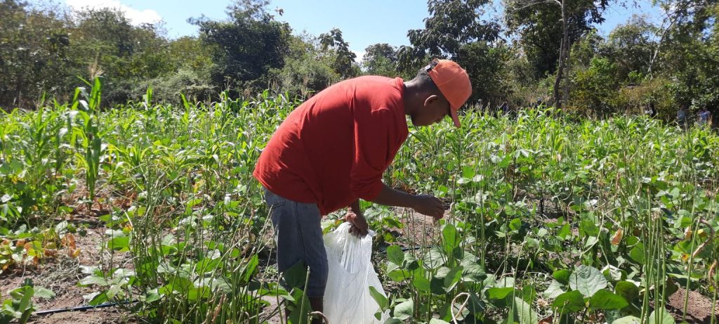 No primeiro ano foram plantadas 15 linhas de milho e 30 linhas de feijão. Essa é a primeira colheita, e o próximo passo é aumentar o plantio, incluindo macaxeira, abóbora e maxixe. No início, o projeto era voltado para os jovens, mas, depois, virou comunitário, conforme explica o tuxaua da comunidade, Delwekelenson Bezerra.
