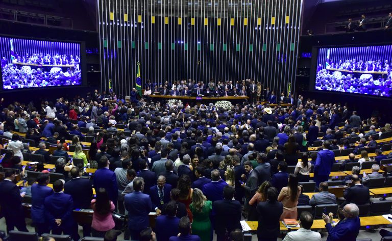 A cerimônia, realizada no Plenário da Câmara, tem a presença dos presidentes Luiz Inácio Lula da Silva; do Congresso Nacional, Rodrigo Pacheco; da Câmara dos Deputados, Arthur Lira; e do Supremo Tribunal Federal (STF), Luís Roberto Barroso.