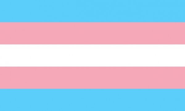 Bandeira trans, criada em 1999 por Monica Helms e apresentada oficialmente um ano após sua criação no Arizona, nos Estados Unidos. As cores pertencentes ao símbolo trans são azul, rosa e branco. Azul para representar tradicionalmente os homens, rosa para as mulheres e branco para pessoas não binárias. Uma curiosidade da símbolo é que as cores são organizadas de forma que não importa o lado ao qual vão balançá-la, ela vai estar sempre na ordem.