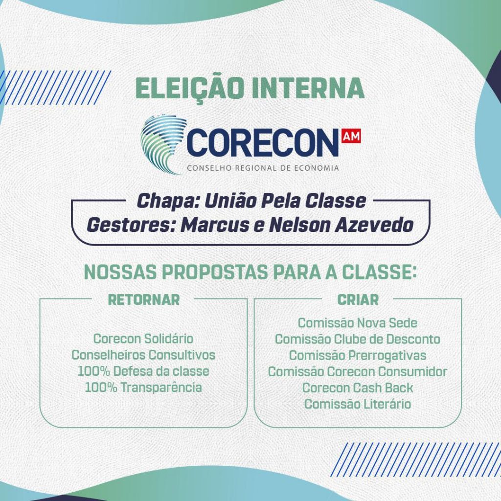 De acordo com o economista Marcus Evangelista, que disputa a presidência ao lado de Nelson Azevedo, como postulante ao cargo de vice, além de trazer novos temas para o conselho, sua chapa possui diversas propostas entre elas a de criar uma comissão para definir uma nova sede para o Corecon, criação da Comissão Clube de Desconto, Comissão Prerrogativas, Comissão Corecon Consumidor, Corecon Cash Back, Comissão Literário.