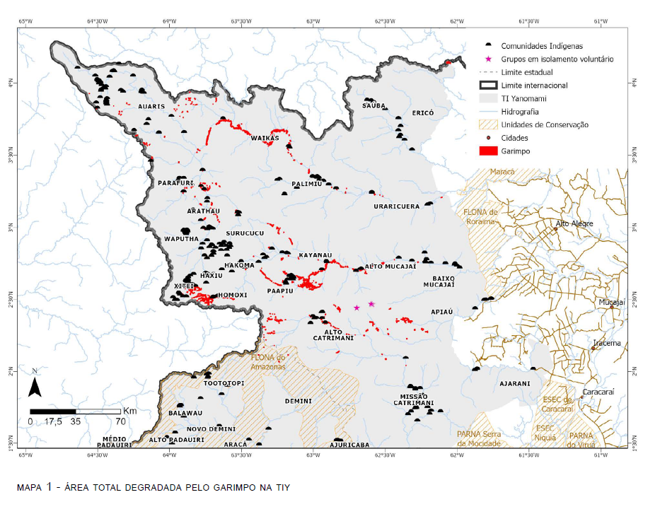 Já um laudo da Polícia Federal divulgado em fevereiro de 2023 também mostrou a presença elevada de mercúrio em indígenas da Casa de Saúde Indígena (Casai) Yanomami, na zona rural de Boa Vista, capital de Roraima. Dos fios de cabelo coletados de 43 indígenas, 76,7% apresentaram alta exposição ao metal. O estudo apontou ainda que todos os examinados viviam próximos a garimpos ilegais na Terra Indígena Yanomami.