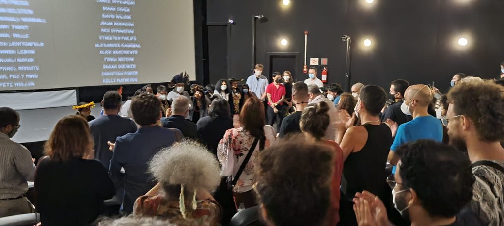 “Quero agradecer ao Festival É tudo Verdade e a todos vocês que estão aqui para assistir ao filme e, principalmente, agradecer e reconhecer os povos originários dessa região, dessa terra que, agora, se chama São Paulo, mas, como sabemos, era terra dos povos Guarani Mbya e Tupi Guarani”, disse o diretor do filme, Alex Pritz, durante a cerimônia.