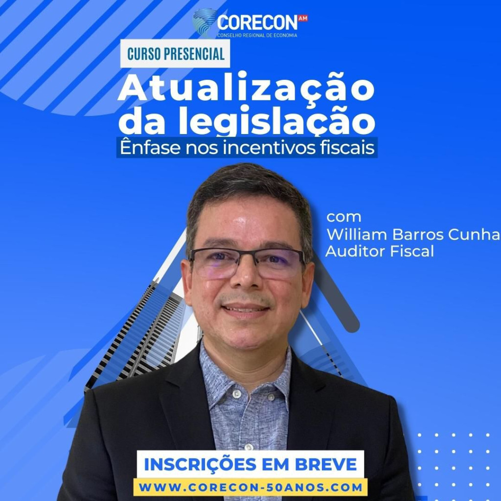 MANAUS – O Conselho Regional de Economia do Amazonas (Corecon-AM) promoverá nos dias 7, 8, 9 e 10 de novembro, das 14h às 17h, um treinamento presencial sobre as atualizações na Lei 5.750, de 2021, e repercussão na Legislação Regulamentar. Com uma carga horária de 12 horas/aula, o curso será ministrado pelo auditor fiscal Willian Barros Cunha.