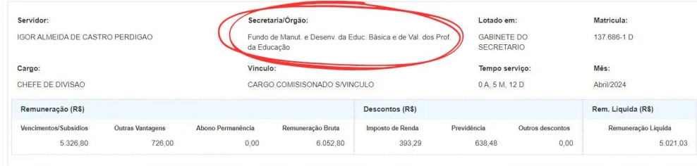 Em junho deste ano, a Prefeitura de Manaus, sob a gestão de David Almeida (Avante), usou recursos do Fundeb para pagar um salário de R$ 6 mil ao vice-presidente do Jovem Avante Amazonas e candidato a vereador pelo município de Itacoatiara (a 276 quilômetros de Manaus), Igor Almeida de Castro Perdigão, nomeado em cargo comissionado da Secretaria Municipal de Educação da capital (Semed).