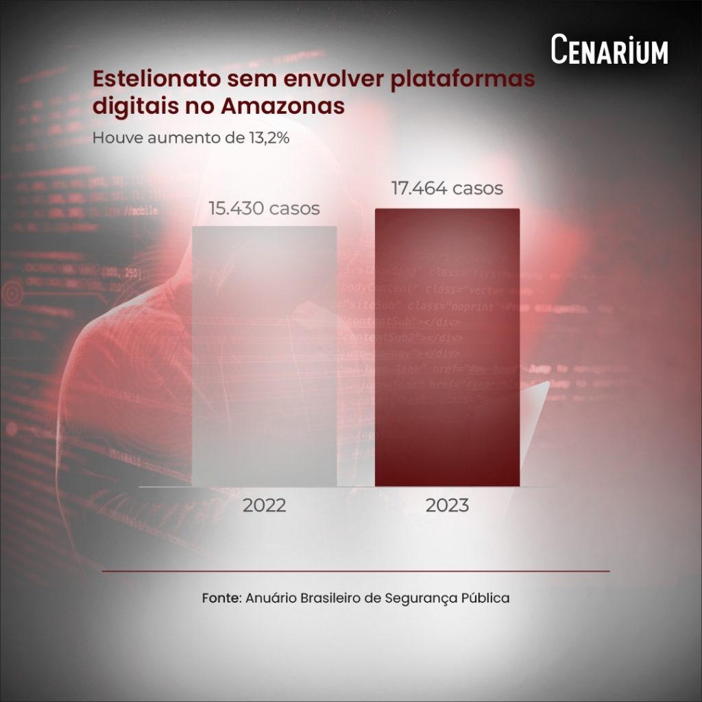 Além dos casos de fraude digital, o Amazonas teve aumento também na porcentagem de crimes de estelionato comum, que alcançaram 13,2% no ano de 2023. No período, as autoridades registraram quase 17,5 mil casos, cerca de 2 mil a mais que no mesmo período anterior.