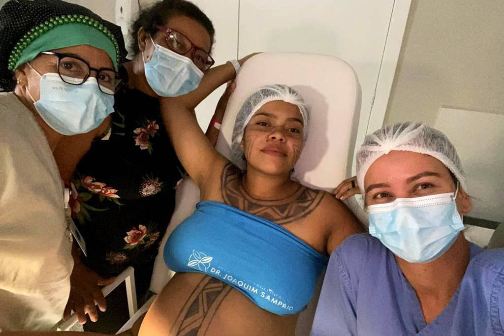 Também teve a companhia da mãe e da avó durante todo o processo de parto. “Eu tinha um pouco de medo de sofrer preconceito [por ser indígena] quando chegasse para parir. Mas fui acolhida desde a chegada, isso me fez sentir mais à vontade”, diz a jovem, cujo nome em tupinambá significa “estrela da tarde”.