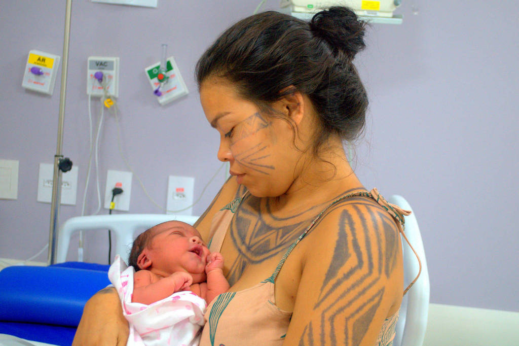 A liderança indígena Amana, 44, mãe de Tainaçã, diz que os partos na aldeia acontecem de forma semelhante. “Além da parteira, nós sempre temos por perto a mãe e a avó nos auxiliando e passando boas energias. Em momento algum, nós deixamos as nossas gestantes sozinhas. E também damos banhos de ervas, da cintura para baixo, para ajudar nas contrações”, conta.