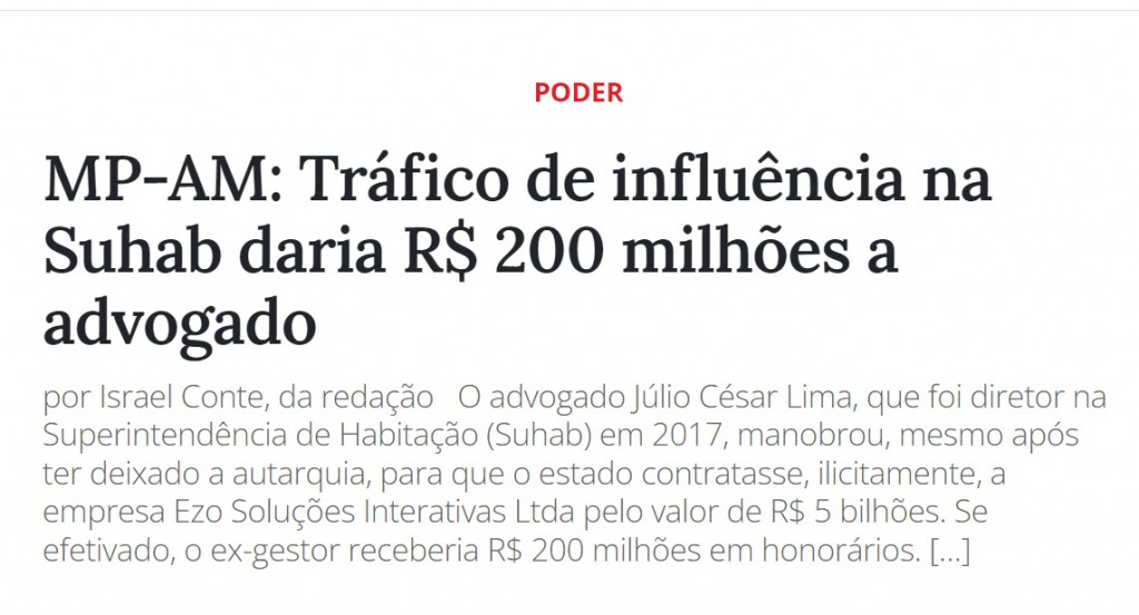 De acordo com informações do MP-AM, o contrato do gabinete de David Almeida com a empresa Ezo teve a seguinte sequência: em 12 de junho de 2017, David Almeida nomeou José Júlio César Corrêa como diretor habitacional da Suhab.