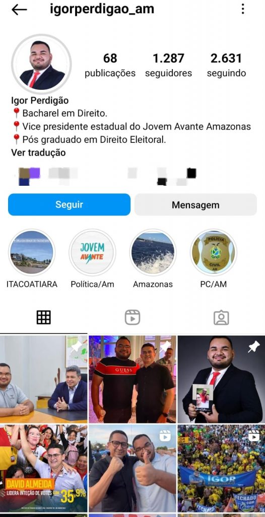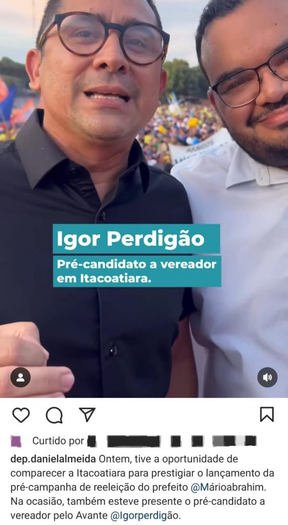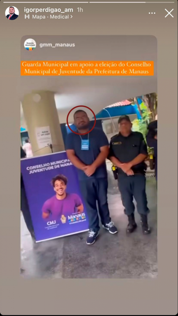 No dia 17 de maio deste ano, Igor Almeida postou stories ao lado de guardas municipais. A publicação estava acompanhada da legenda “Guarda Municipal em apoio à eleição do Conselho Municipal de Juventude da Prefeitura de Manaus”.